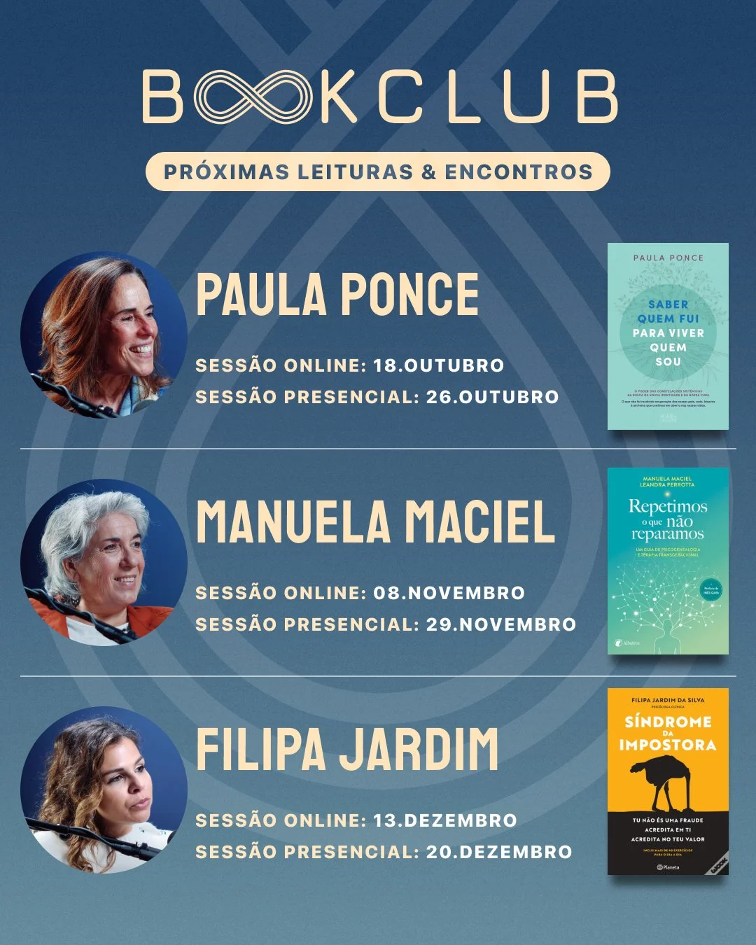 Descobre o calendário dos próximos encontros do Book Club e reserva já os teus momentos de inspiração e partilha.
